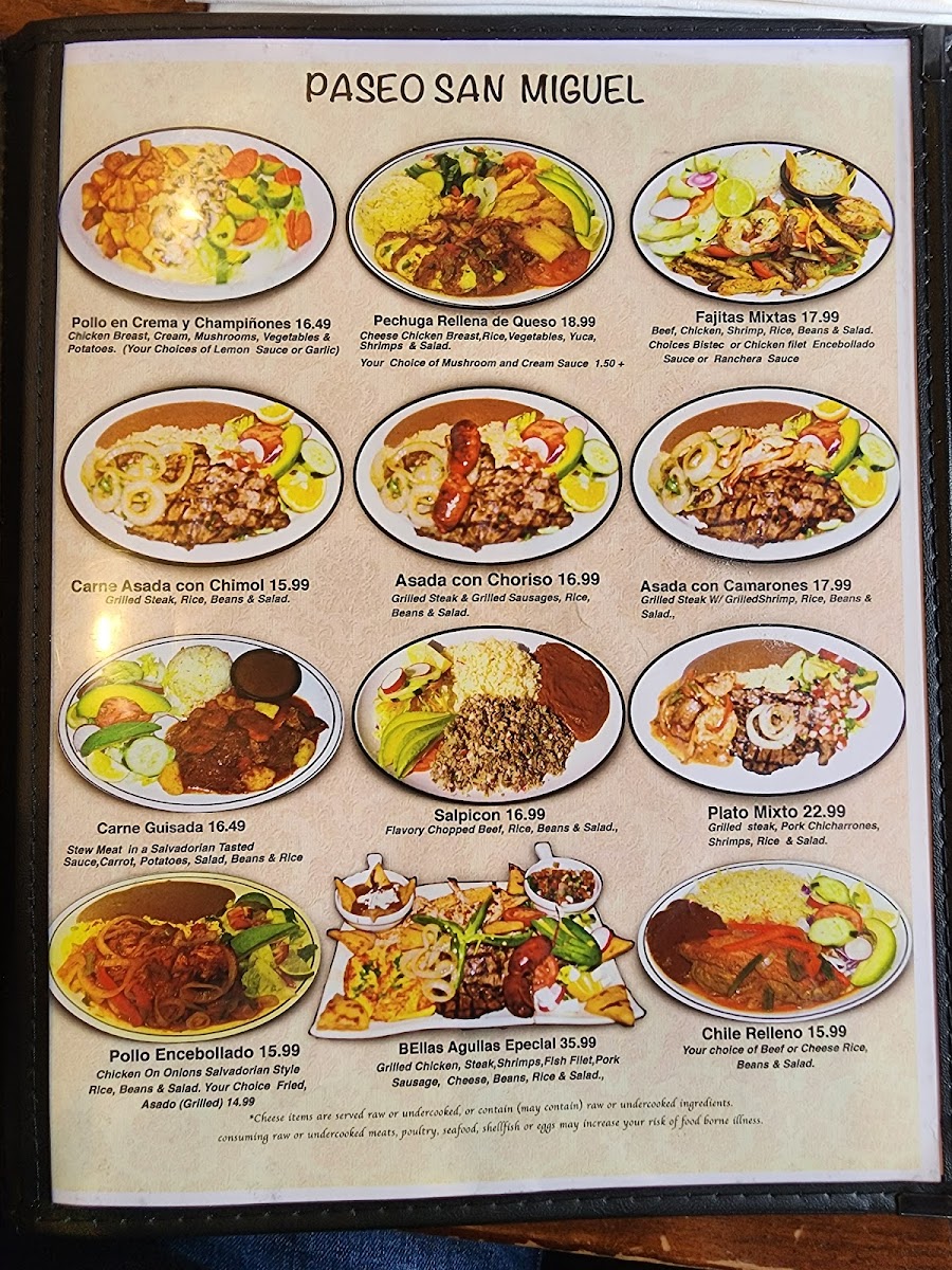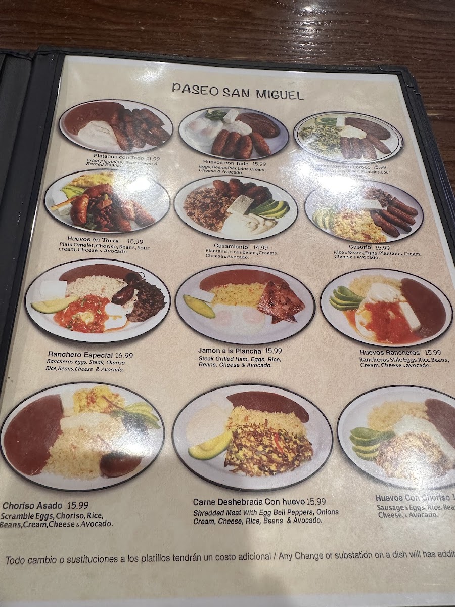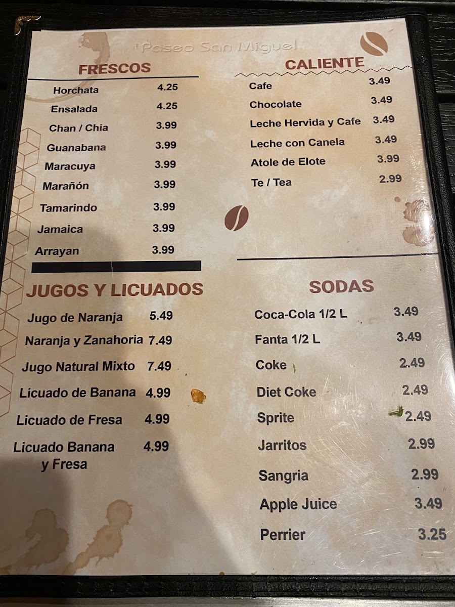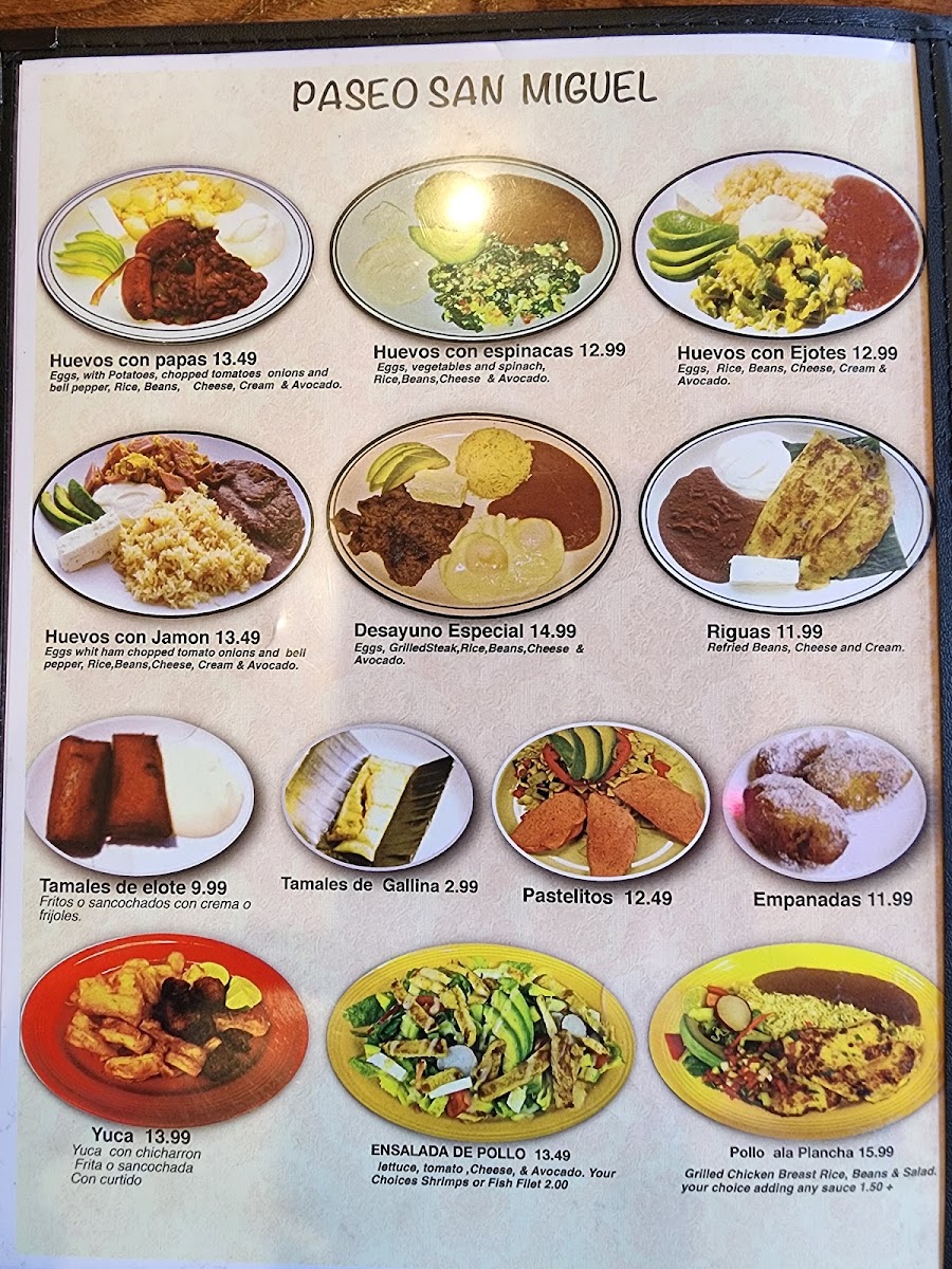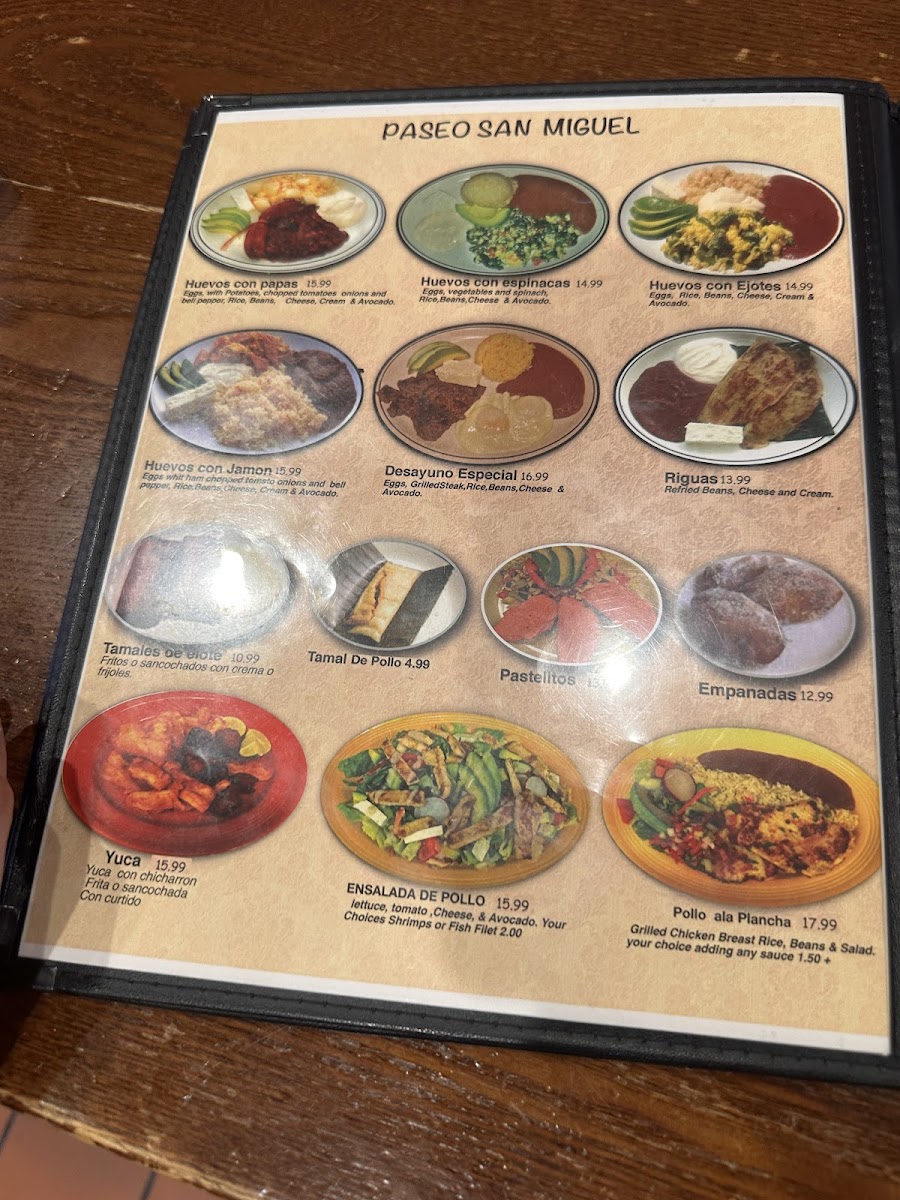 Paseo San Miguel Menu